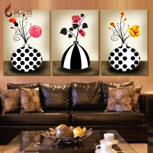 3D印花十字绣三联画餐厅系列艺术花瓶十字绣新款客厅简约现代挂画