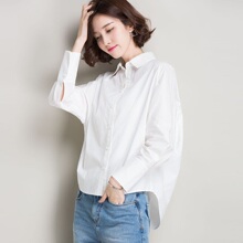 自然醒纯棉衬衣韩版蝙蝠袖休闲长袖白色衬衫女夏韩范宽松学院风