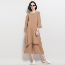 2017春夏新品女士冰麻套装欧韩时尚流苏休闲针织衫阔腿裤两件套潮