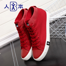 人本高帮帆布鞋男春 纯色休闲单鞋 韩版透气百搭情侣平底运动板鞋