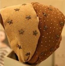 韩版宽边发箍发夹 新款麂皮绒布 星星小点点铆钉 头箍冬季发卡