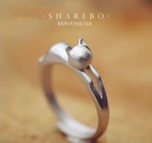 银饰猫耳心率戒指鹿角树枝戒指小清新饰品甜美开口调节可爱日韩