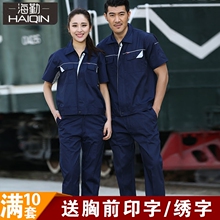海勤半袖工作服套装男女短袖工程服夏季劳保服工厂车间工装衣定做