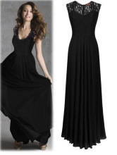 速卖通欧美新款蕾丝拼接雪纺超长连衣裙 晚礼服性感连衣裙