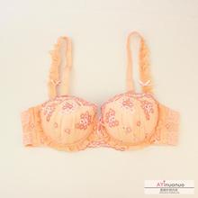 D-D123日单 半杯 桔色荷叶边花朵刺绣 大码文胸65B75D80AD