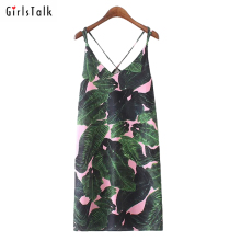 我很欧美~2017夏新款性感深V吊带露背花朵印花直筒无袖连衣裙女