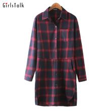 2017韩版春秋新款大码衬衫连衣裙百搭格子中长款学生宽松衬衣女潮
