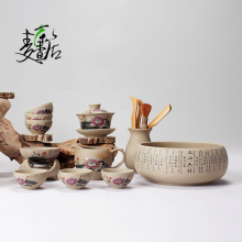 仿古粗陶彩绘陶瓷陶土功夫茶具茶杯套装盖碗茶滤茶杯茶洗茶道整套