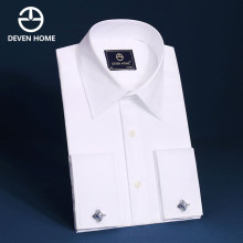 谛梵男装 商务男士白色法式衬衫长袖正装韩版纯棉袖扣衬衣修身型
