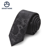 devenhome休闲领带男韩版窄版5cm黑色佩斯利花纹小领带礼盒装潮