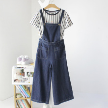 C53 可脱卸背带纯棉无弹力七分裤牛仔裤2016年夏新品阔腿裤女专柜