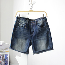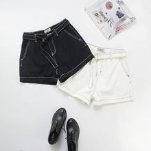 Q5简单明了的色彩 中腰复古明线设计柔软水洗棉牛仔短裤女夏新品