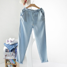 Q12听我说 皮筋抽绳中腰薄款天丝棉牛仔裤长裤直筒裤夏季新品推荐