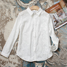B84翻领太阳花刺绣显瘦文艺白衬衫长袖女上衣柔软微透需打底新品