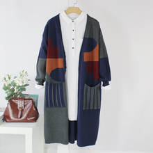 H3岁月如歌 深V领显瘦超柔软羊毛混纺拼接设计中长款毛衣秋冬新品