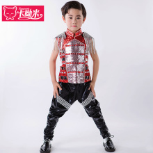 新款儿童演出服男童亮片套装少儿街舞爵士舞架子鼓服主持人服装