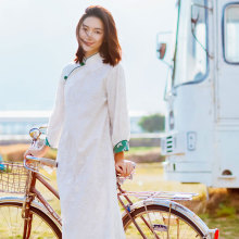 素萝 朱颜。肆 原创设计民族风女装2017春装立领仿旗袍蕾丝连衣裙