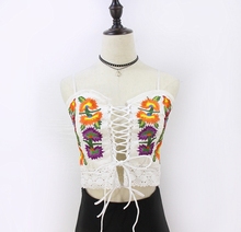 夏季欧美INS风重手工刺绣吊带度假背心 交叉绑带聚拢镂空上衣女装