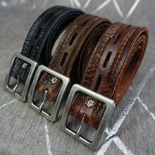 亏本清仓进口头层牛皮腰带男女士针扣做旧外贸休闲牛仔真皮皮带