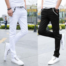 夏季休闲裤男土修身纯白色长裤青年学生夏天裤子男士薄款纯棉百搭