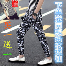 夏季薄款男土束脚迷彩九分8分裤 韩版宽松休闲学生9八分哈伦阔腿