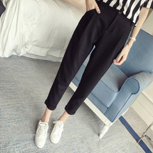 2016春季新款韩版时尚学生修身休闲松紧腰纯色小脚裤显瘦哈伦裤女