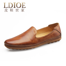 ldioe秋季男士休闲皮鞋男鞋真皮正品 英伦套脚皮鞋男款套脚 透气