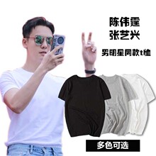 陈伟霆张艺兴男明星同款短袖T恤夏纯色短袖韩版宽松大码情侣上衣