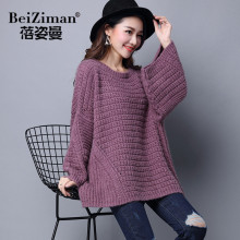 圆领毛衣女秋冬厚款套头打底衫长袖宽松大码中长款轻熟女针织外套