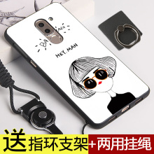华为荣耀6X手机壳挂绳女 畅玩6X手机套硅胶软防摔保护套潮男黑壳