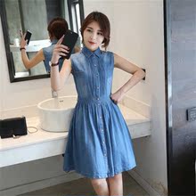 2017春夏新款无袖牛仔连衣裙女韩版宽松大码收腰裙子A字裙