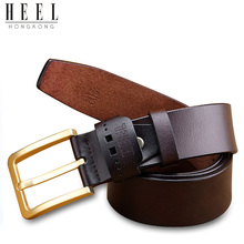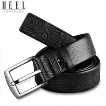 heel 2016新款皮带男真皮平滑扣青年学生男士腰带纯牛皮中年裤带
