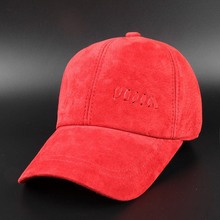 新款春秋季真皮帽子男女通用款翻毛羊皮棒球帽印花皮帽圆顶鸭舌帽