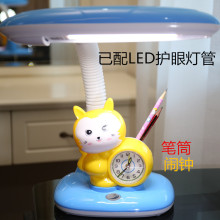 创意带闹钟笔筒三合一学生学习护眼LED台灯卡通卧室床头书桌写字