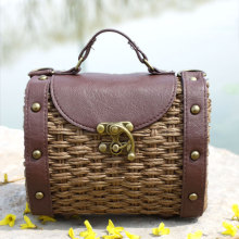 新款复古森女方形小包单肩编织包草编包休闲小包手机包女包斜挎包