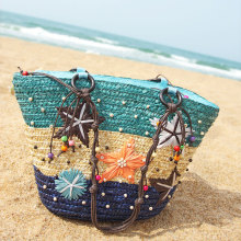 新款草编包手工编织包藤编包撞色沙滩包单肩包大包度假草包女包包