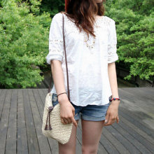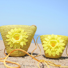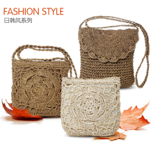 韩版新款可爱大花朵草编包单肩包迷你斜挎包沙滩包小清新女包草包