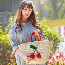 韩版新款手工编织草编包夏季女包手提包樱桃大容量沙滩包度假草包