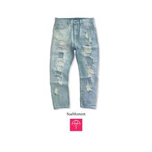 【LISA国潮】Sua SuaMoment 水洗破洞破坏九分裤牛仔裤休闲裤