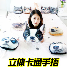 【天天特价】日韩3D印花狗猫咪靠垫可爱毛绒玩具午睡抱枕汽车腰
