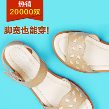 夏季妈妈凉鞋真皮软底平跟中老年女鞋妈妈鞋女休闲老人凉鞋沙滩鞋