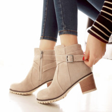 韩版绒面磨砂女鞋春秋新款拉链百搭短靴子粗跟中跟学生短筒马丁靴