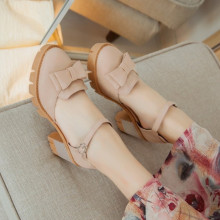 英伦风复古粗跟女鞋子蝴蝶结包头少女凉鞋夏新款防水台中跟休闲鞋