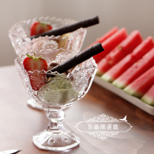 冰爽夏季欧式雕花冰激凌杯 复古玻璃杯 美国高脚六角酸奶奶昔杯