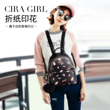 斯诺背包女双肩包女韩版百搭印花时尚女包pu休闲简约学院风潮书包