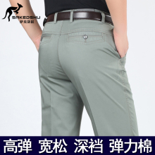 萨克袋鼠商务弹力休闲裤男士高腰宽松直筒深裆男裤春夏季薄款长裤