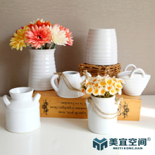 美宜空间现代简约白色陶瓷花瓶仿真花套装简约花器 多款可选