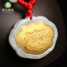 双儿珠宝24K黄金镶和田玉吊坠男女金镶玉龙凤玉坠珠宝首饰带证书