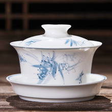 三炮台八宝茶盖碗 特大号陶瓷盖碗盖杯茶碗 三才碗泡茶碗300cc