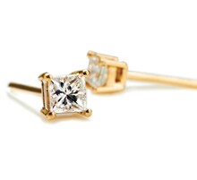 宝石矿工 18k黄金钻石耳钉 玫瑰金单钻耳钉 白金公主方钻石耳钉